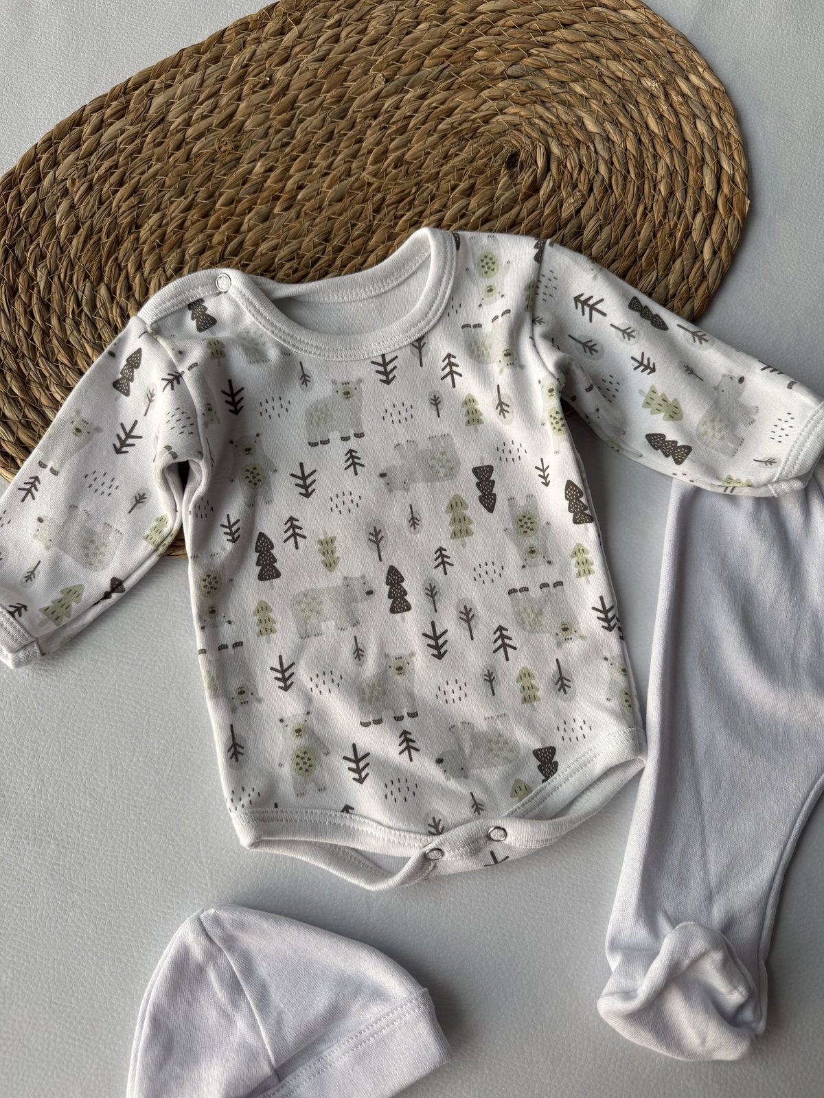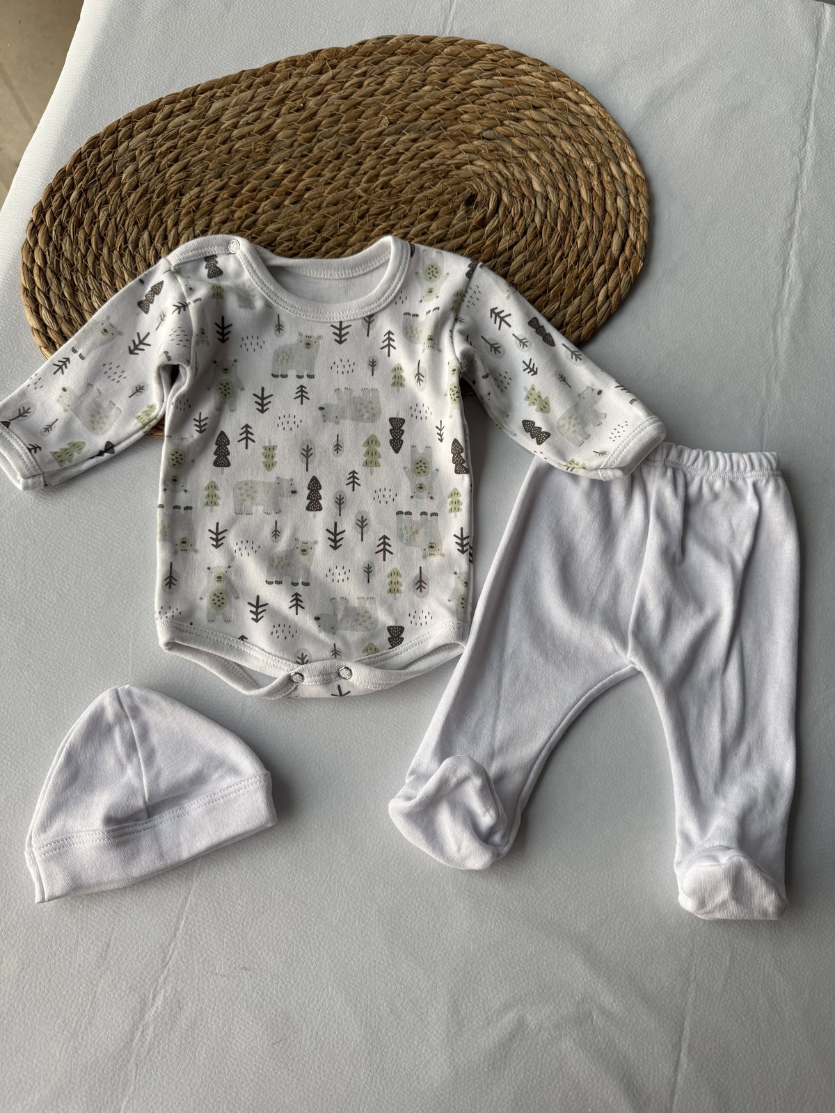 Ajuar bambi 100% algodón, broches metálicos. 3 piezas haciendo juego, talle RN, abarca hasta los 4.200 kg