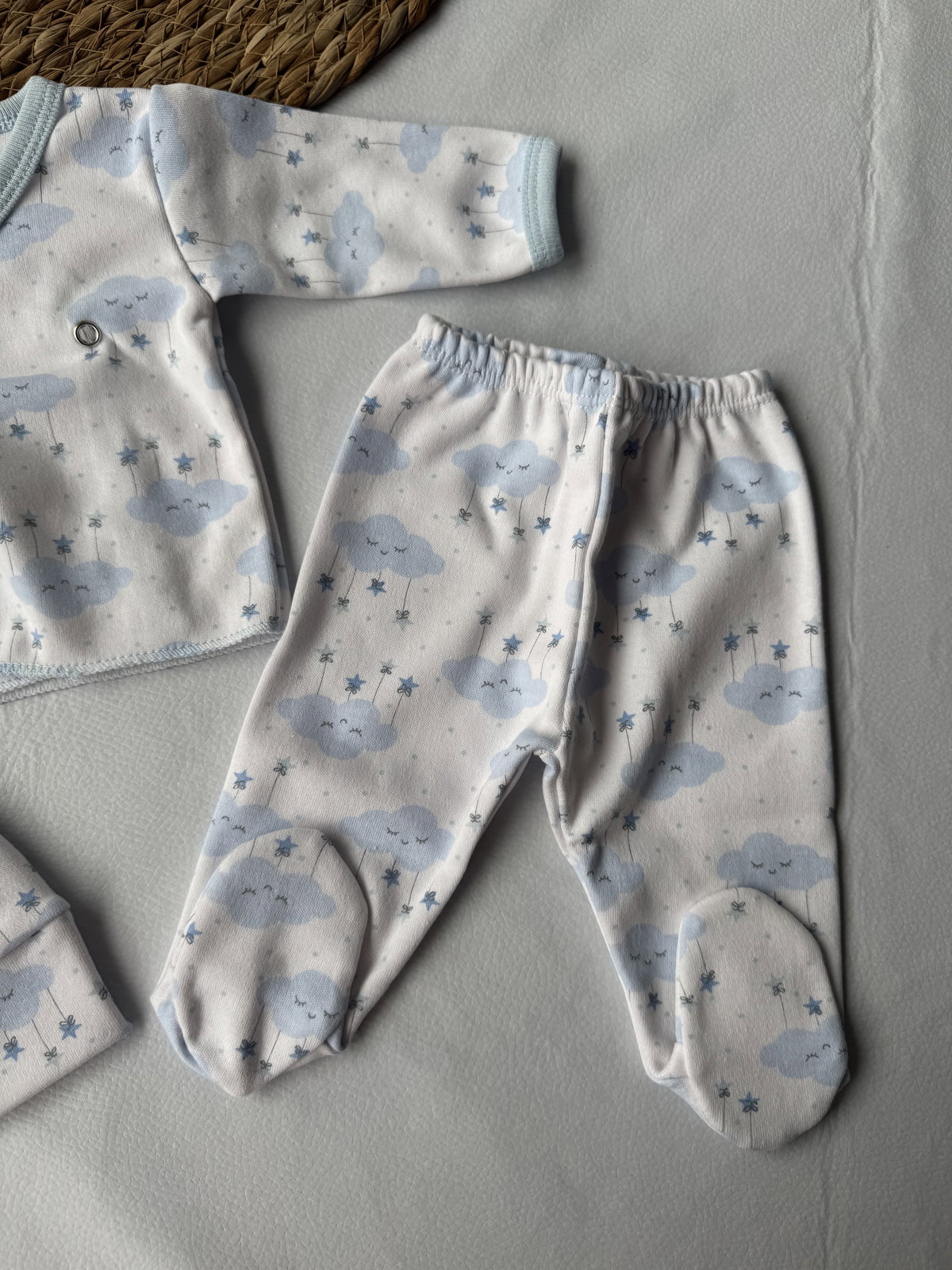 Ajuar  100% algodón, broches metálicos, calidad premium. 3 piezas haciendo juego, talle RN, abarca hasta los 4.200kg