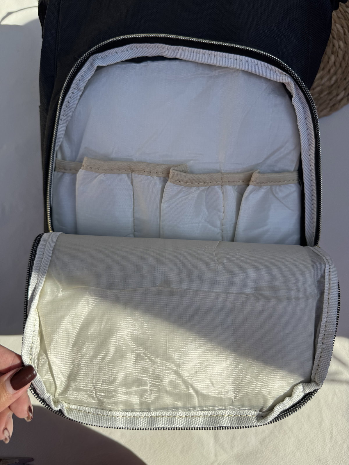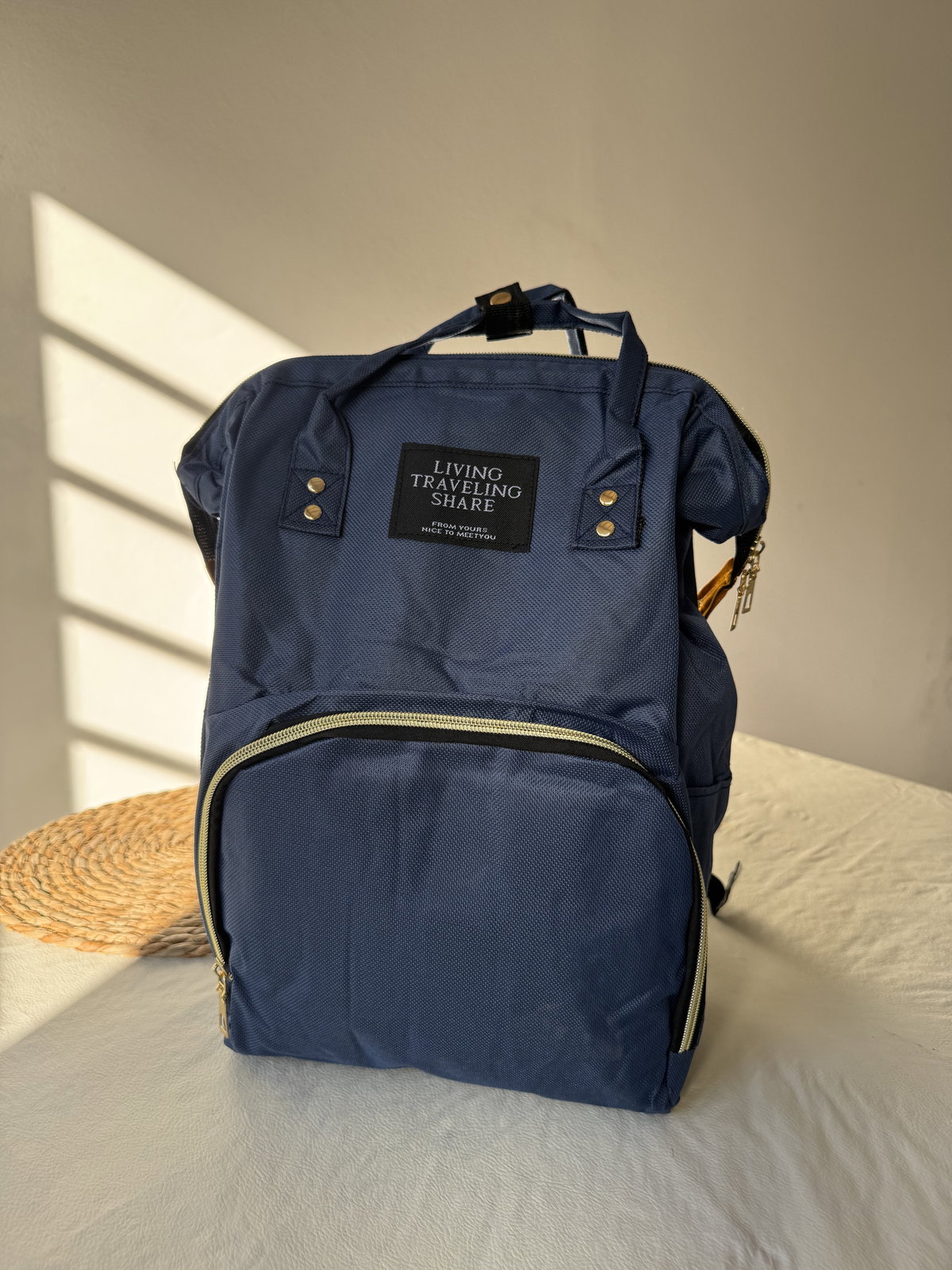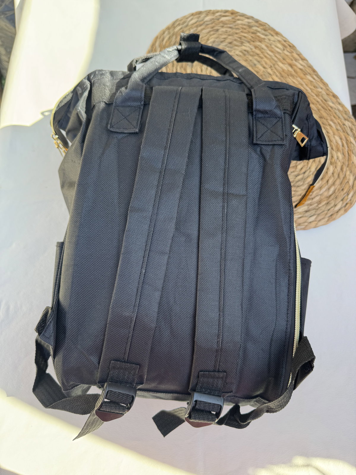 Mochila maternal. Cierres reforzados compartimientos internos y externos, bolsillo término para la mamadera. Tiras regulables
