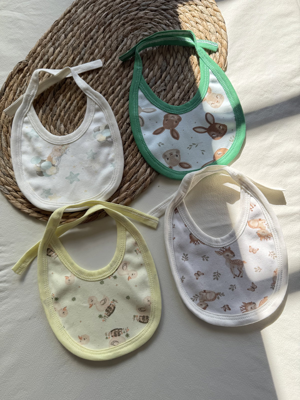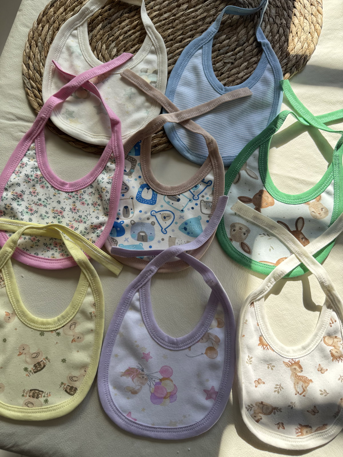 Baberos estampados de algodon para atar. Pack de 2 unidades. Estampa aleatoria, se puede elegir el variante