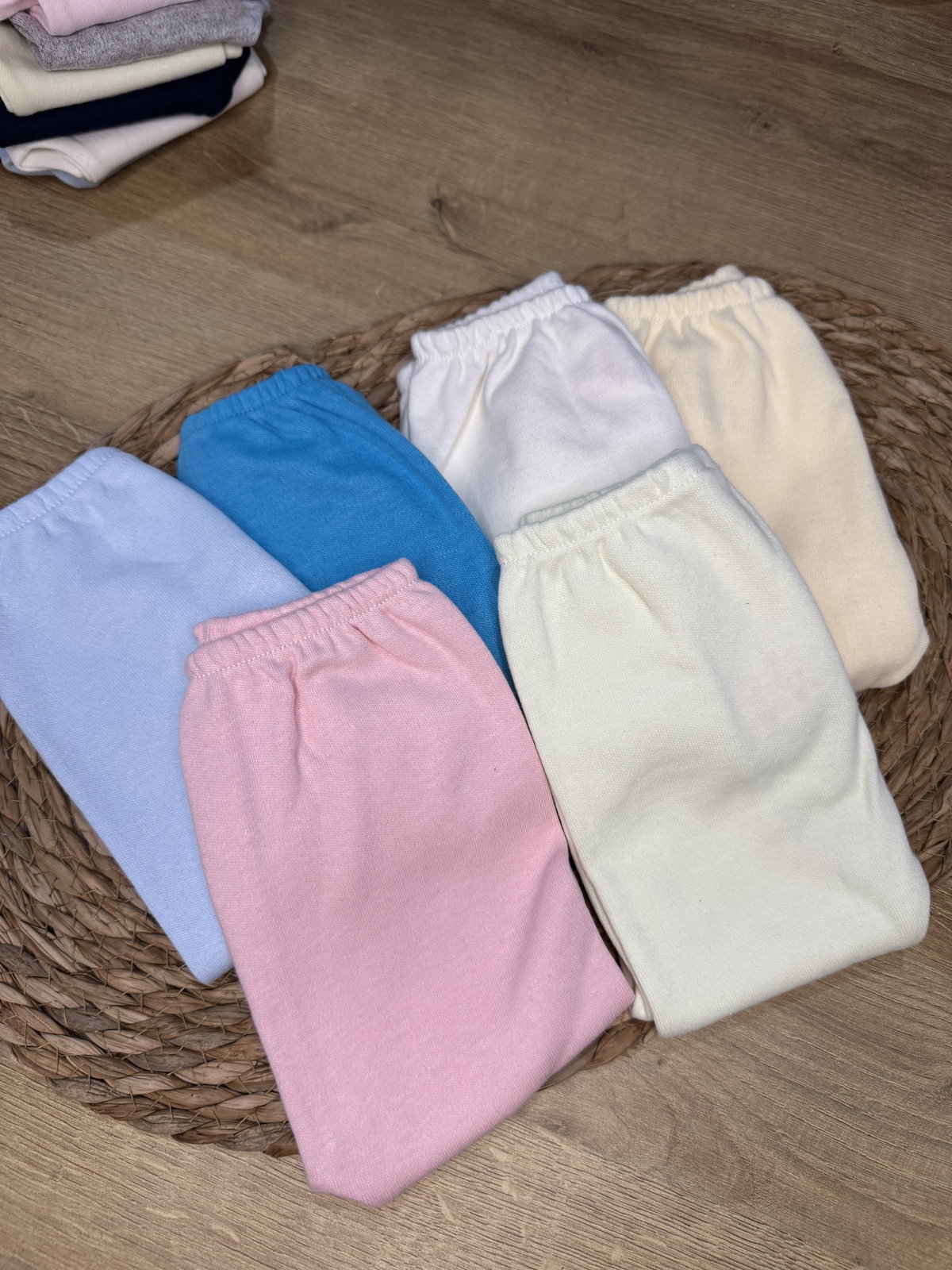 Ranitas talle 0, va hasta los 4.200 kg, algodón elastizado, elástico en la cintura