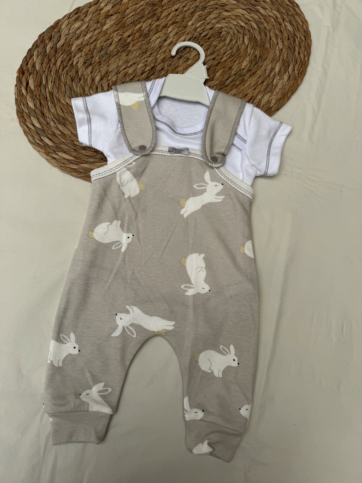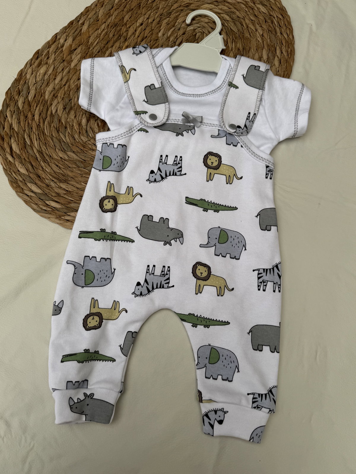 Jardinero con body manga corta haciendo juego, 100% algodón. Talle único que abarca hasta los 5.200 kg