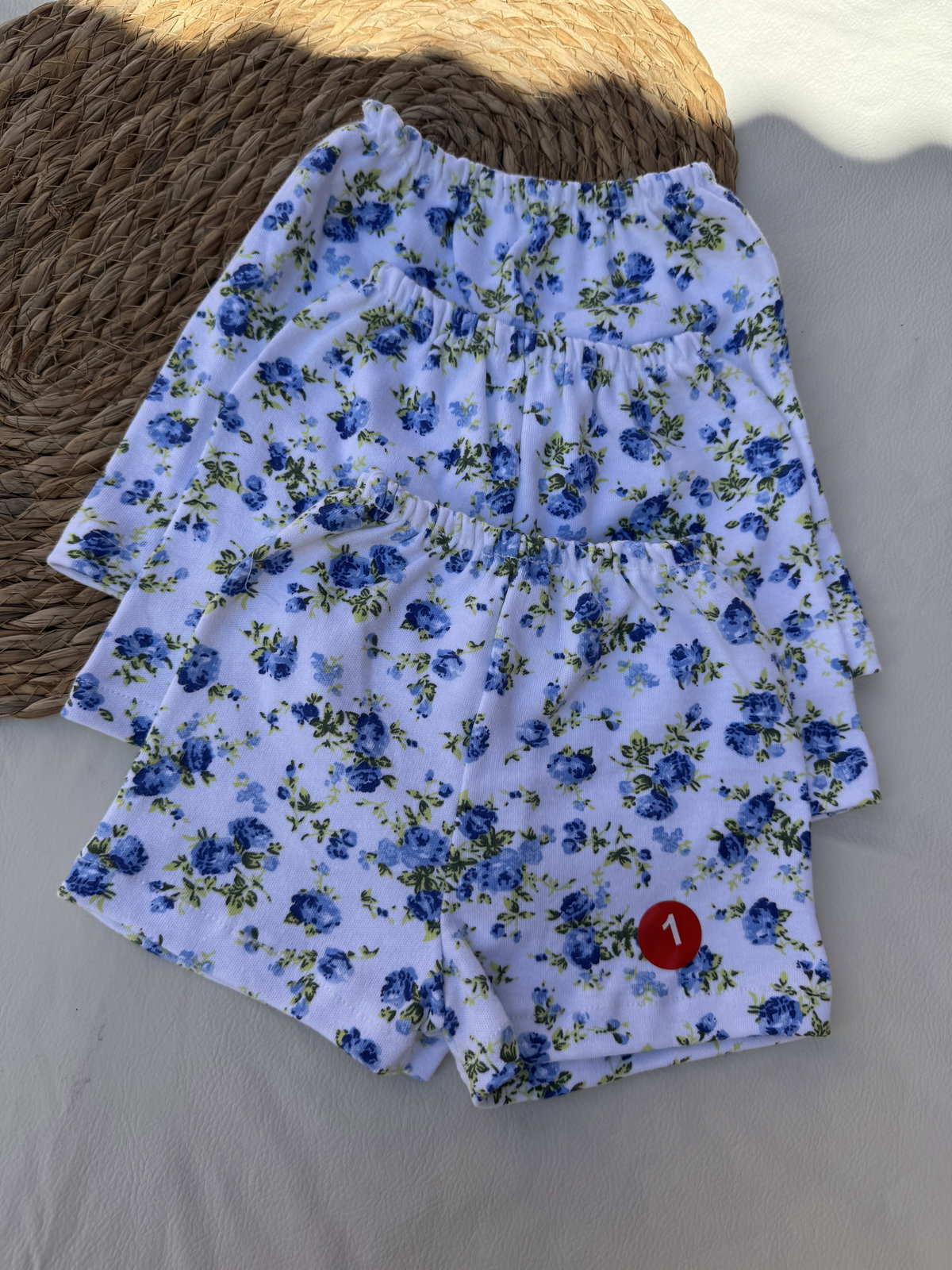 Pantalón floral corto. 100% algodón con elástico en la cintura